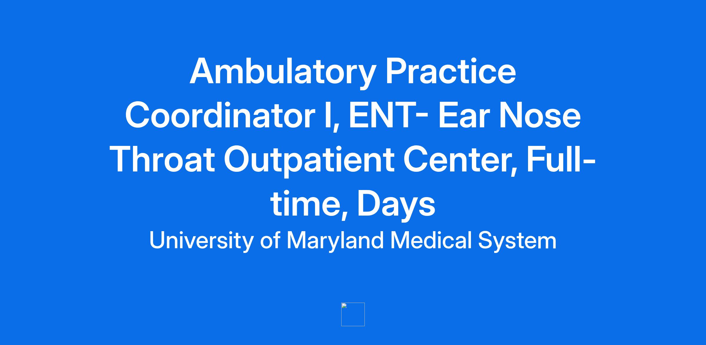 The University of Maryland Medical Center is seeking an Ambulatory Practice Coordinator to join the Otolaryngology (ENT) clinic. This position is based within a hospital-based outpatient practice. The clinic is a fast-paced, high-volume environment where you’ll work alongside well-known Otolaryngologists who are leaders in their field. Our team is committed to delivering exceptional, patient-centered care. This role offers the opportunity to contribute to a collaborative, innovative, and academically driven practice that values excellence, teamwork, and professional growth. A successful Ambulatory Practice Coordinator possesses a strong commitment to providing exceptional service and serves as a patient advocate. Come join our exciting team!