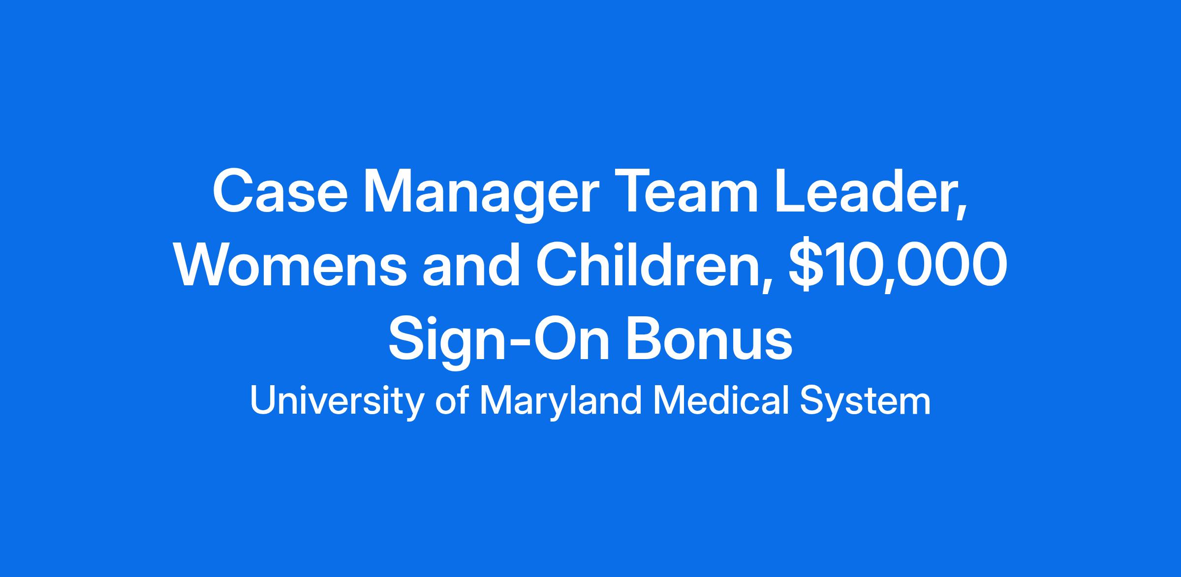 Case Manager Team Leader, Womens and Children, $10,000 Sign-On Bonus