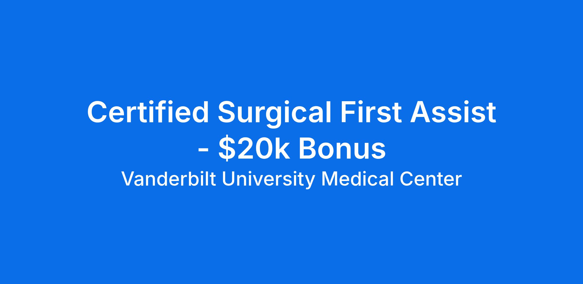 The Certified Surgical First Assist performs in the expanded role as a CST First Assistant to the Surgeon, by performing positioning, prepping, and draping of patient, providing hemostasis, providing wound exposure and handling of sutures and tissue under the direction and supervision of the operating surgeon. May perform as a Surgical Technologist when not First Assisting. Registration with the Tennessee Board of Medical Examiners is required..
