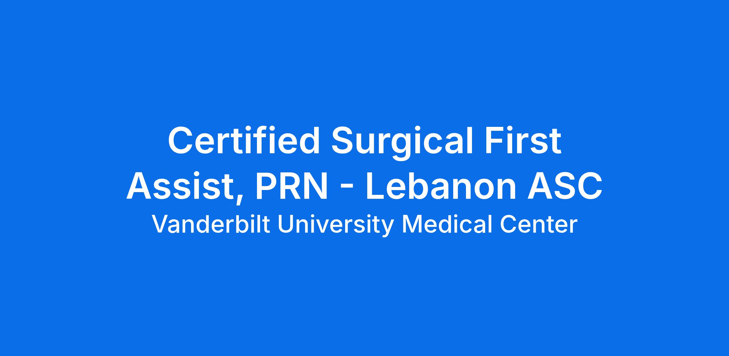 The Certified Surgical First Assist (PRN) functions in an expanded role as a CST First Assistant to the surgeon. Responsibilities include patient positioning, prepping and draping, providing hemostasis, maintaining wound exposure, and handling sutures and tissue under the direction and supervision of the operating surgeon. When not functioning in the First Assist role, this position may perform duties as a Surgical Technologist..