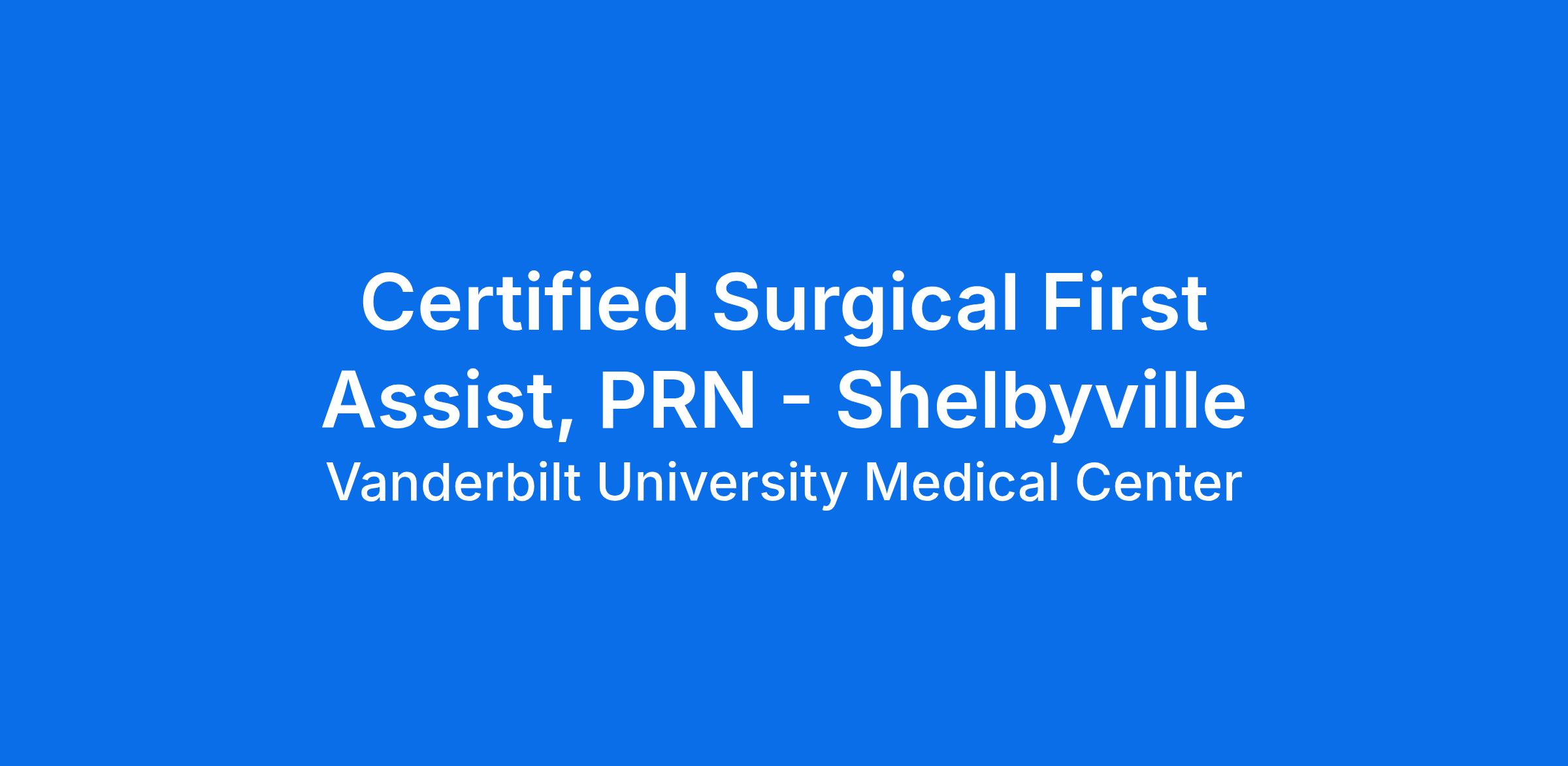 Certified Surgical Assistant - National Commission for Certification of Surgical Assistants (NCCSA), Certified Surgical Assistant - National Surgical Assistant Association (NSAA), Certified Surgical First Assistant - National Board of Surgical Technology and Surgical Assisting (NBSTSA), Certified Surgical First Assistant - The American Board of Surgical Assistants (ABSA), LIC-Registered Surgical Assist-Tennessee - TennesseeWork Experience: