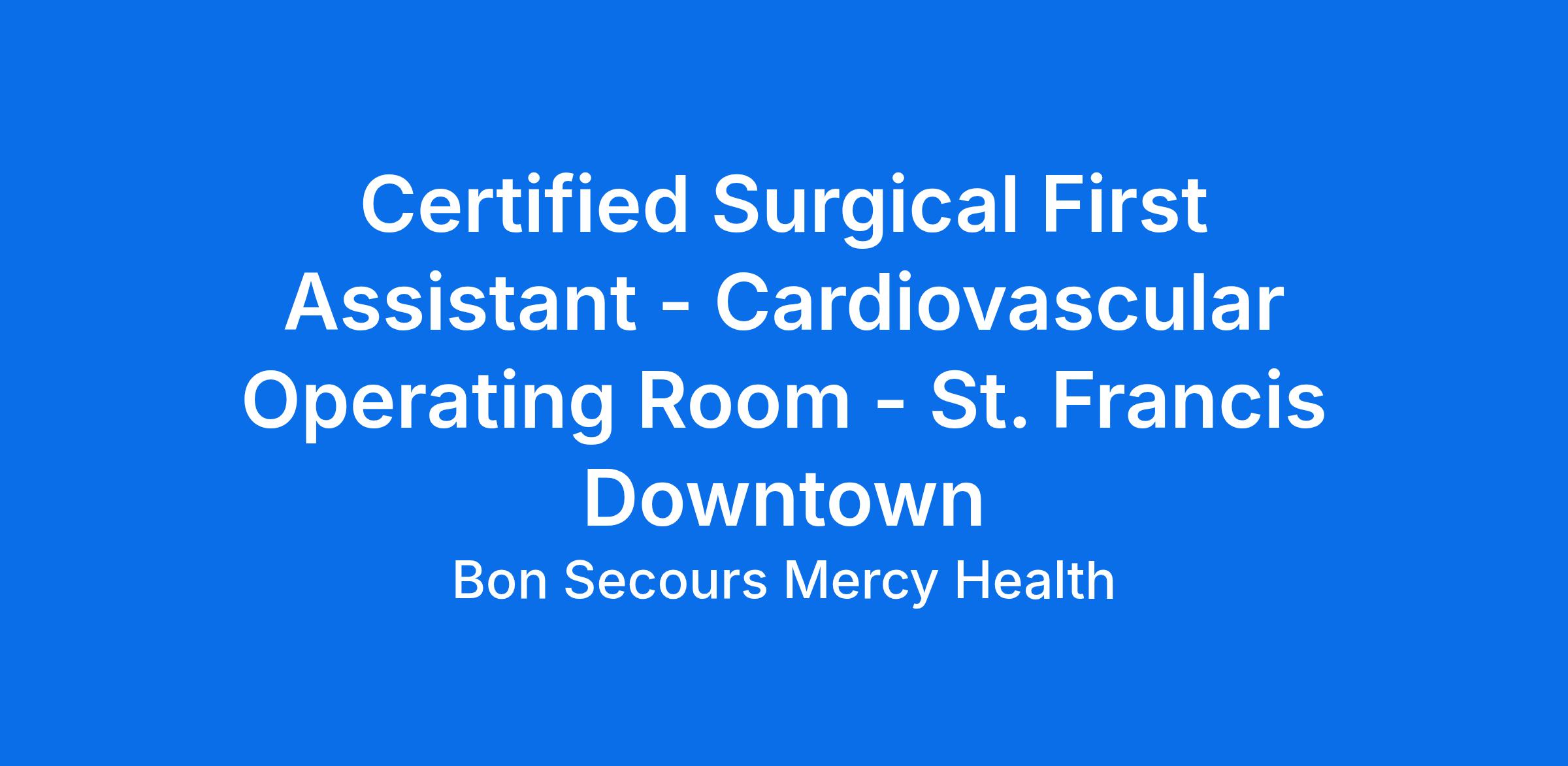 Certified Surgical First Assistant - Cardiovascular Operating Room - St. Francis Downtown