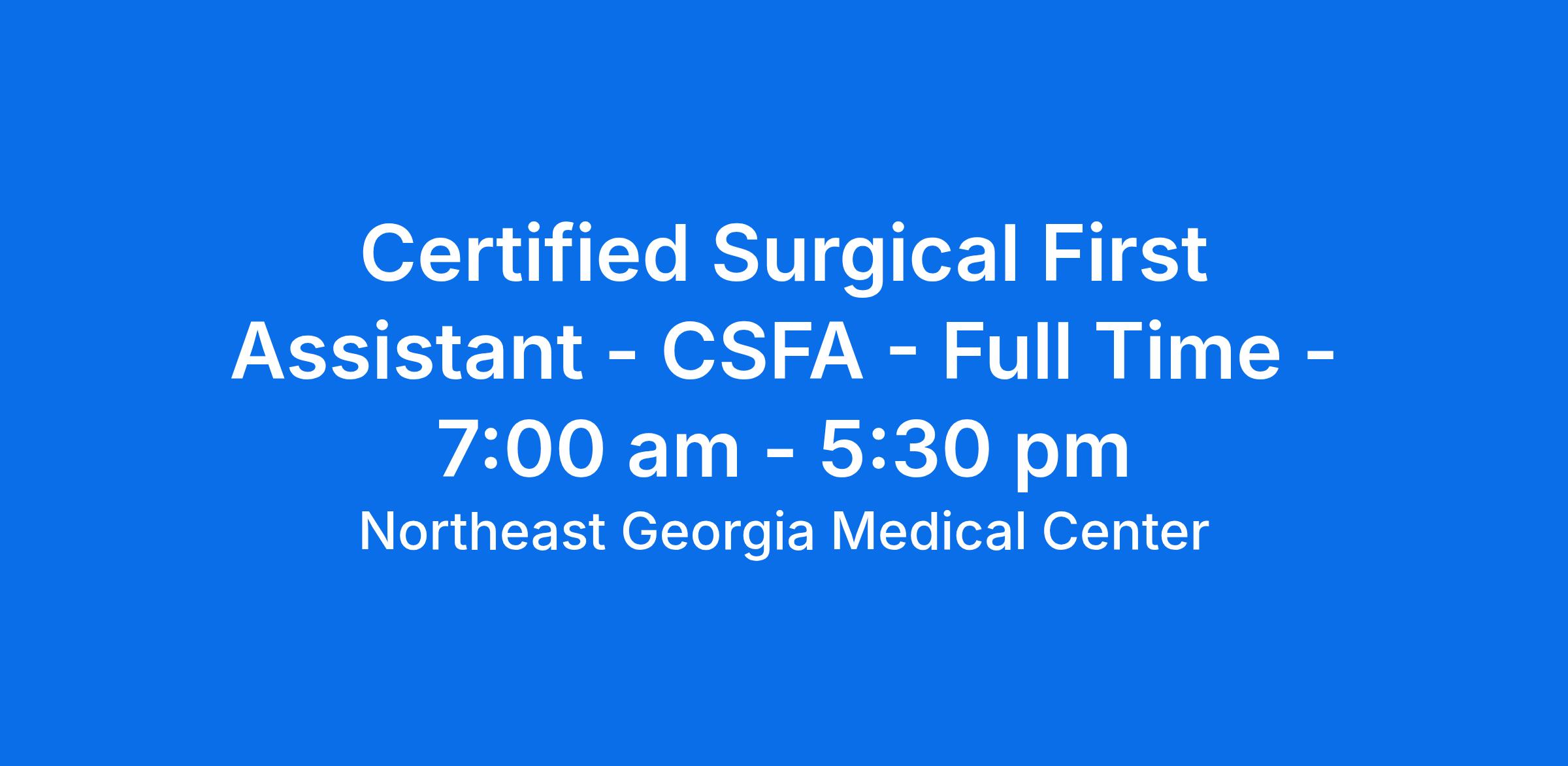 Licensure or other certifications: Certified Surgical Technologist required with successful completion of accredited first assist program.