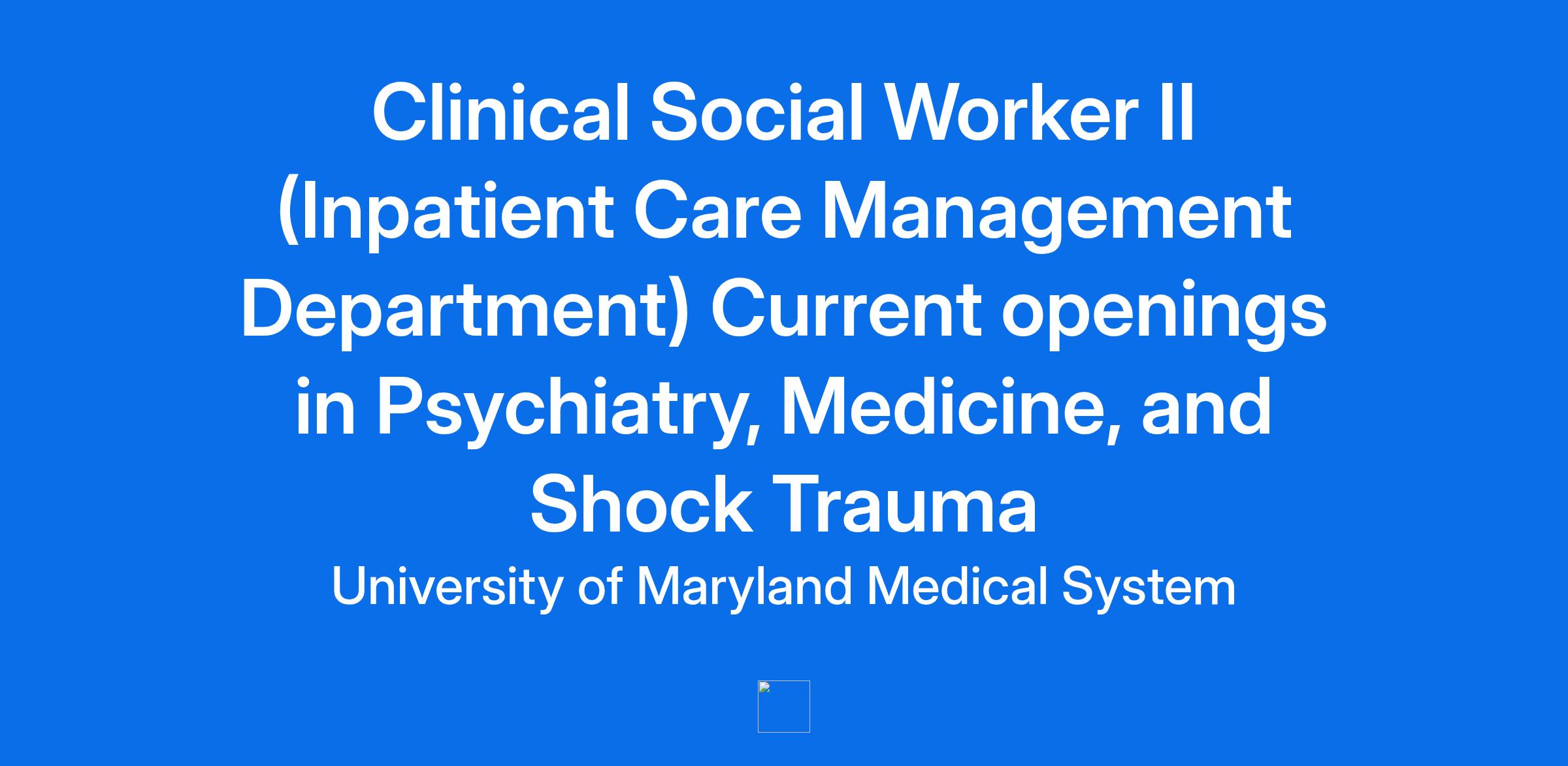 Master’s degree in Social Work required. Maryland state LCSW-C licensure and credentials is commensurate with clinical assignment.