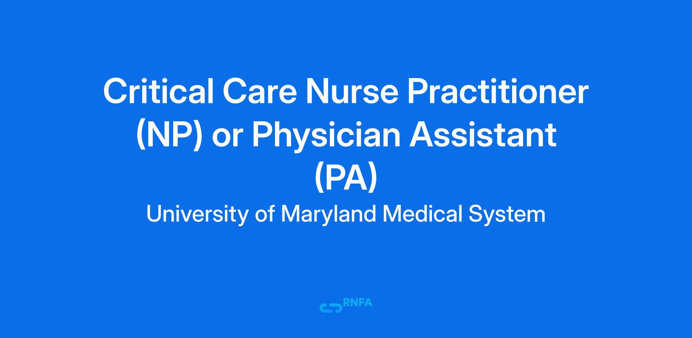 UM Upper Chesapeake Health (UMUCH), a member of the University of Maryland Medical System (UMMS), has a full-time employed position available for a Critical Care Nurse Practitioner (NP) or Physician Assistant (PA) to join their practice located in Bel Air, MD.