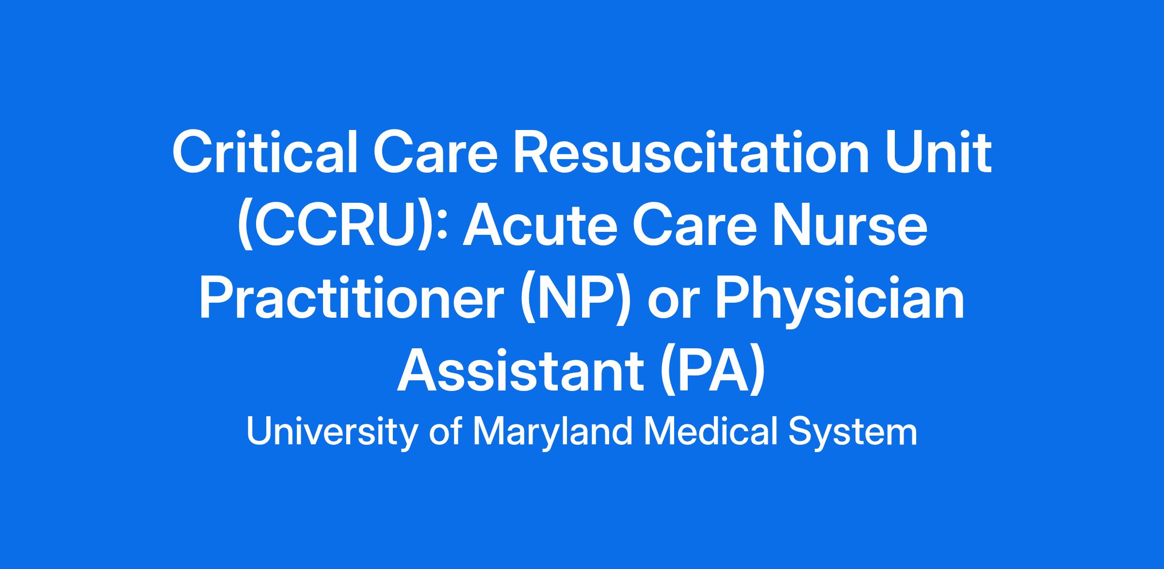 This position is working as an Acute Care Nurse Practitioner or Physician Assistant in the Critical Care Resuscitation Unit