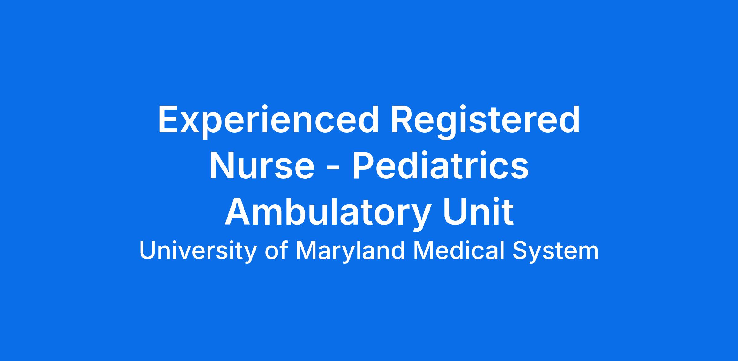 Experienced Registered Nurse - Pediatrics Ambulatory Unit