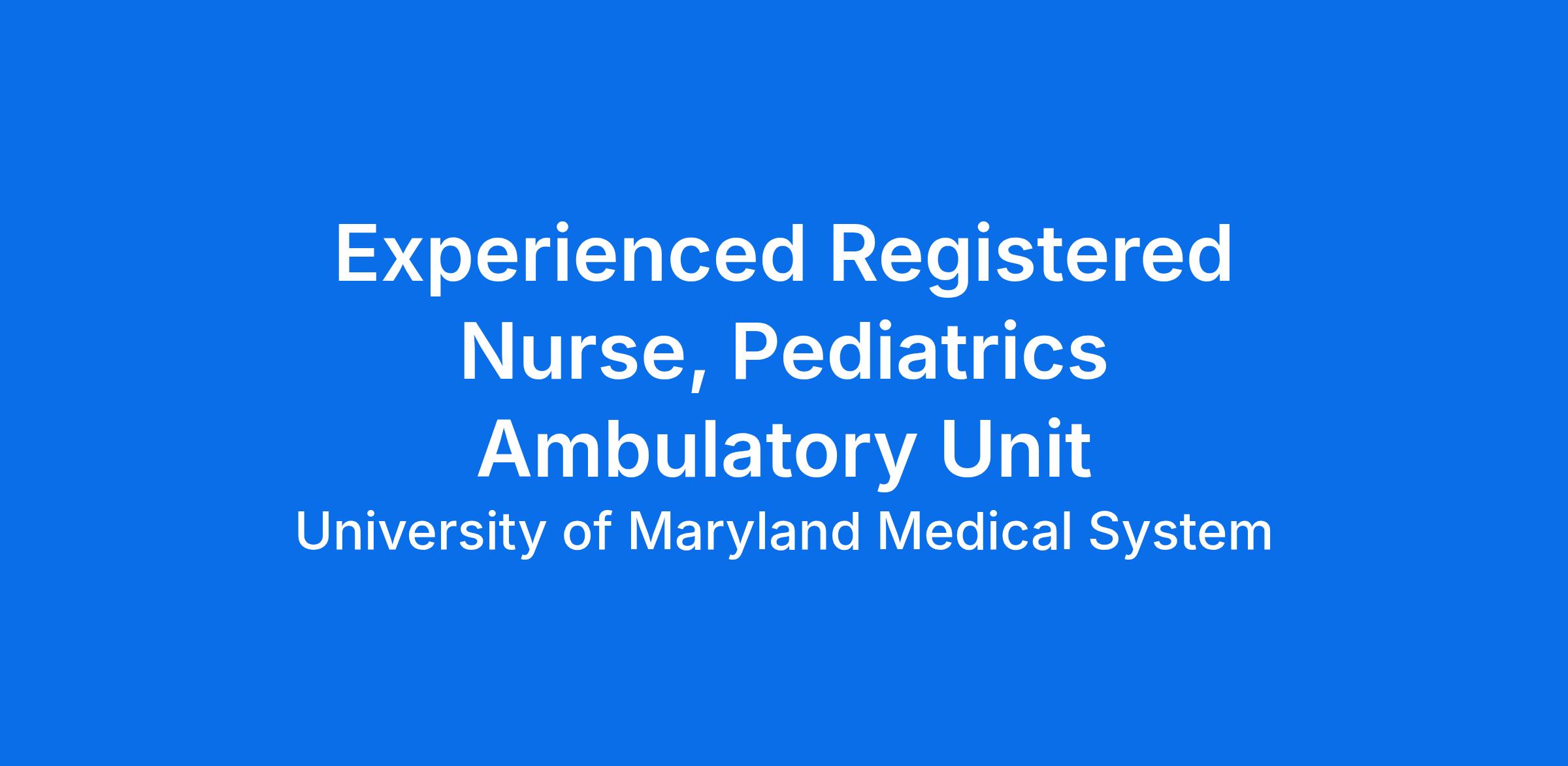 Licensure as a Registered Nurse in the state of Maryland, or eligible to practice due to Compact state agreements outlined through the MD Board of Nursing, is Required.
