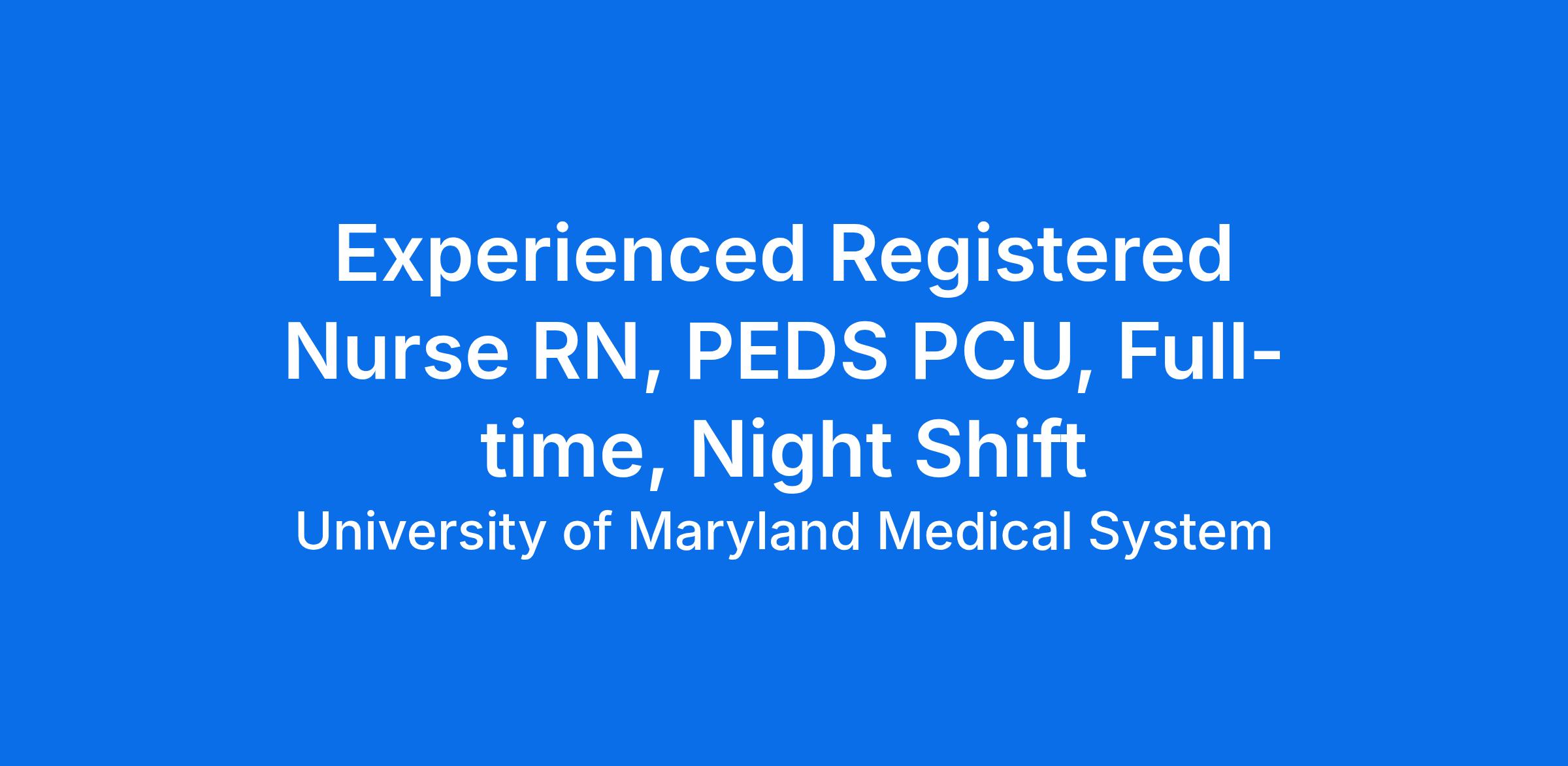Licensure as a Registered Nurse in the state of Maryland, or eligible to practice due to Compact state agreements outlined through the MD Board of Nursing, is required.