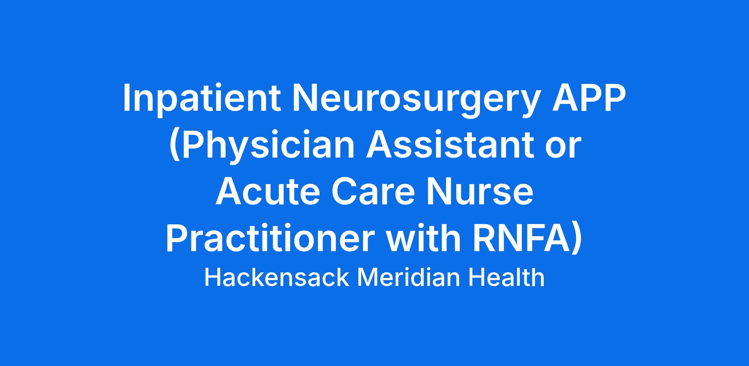The Physician Assistant or Adult Acute Care Nurse Practitioner with RNFA assists, monitors, and manages the day-to-day needs of patients as requested by, in conjunction with, and under the supervision of a physician. Performs the duties and responsibilities of a Physician Assistant according to customary and generally accepted medical standards. Inpatient with rotating weekends.