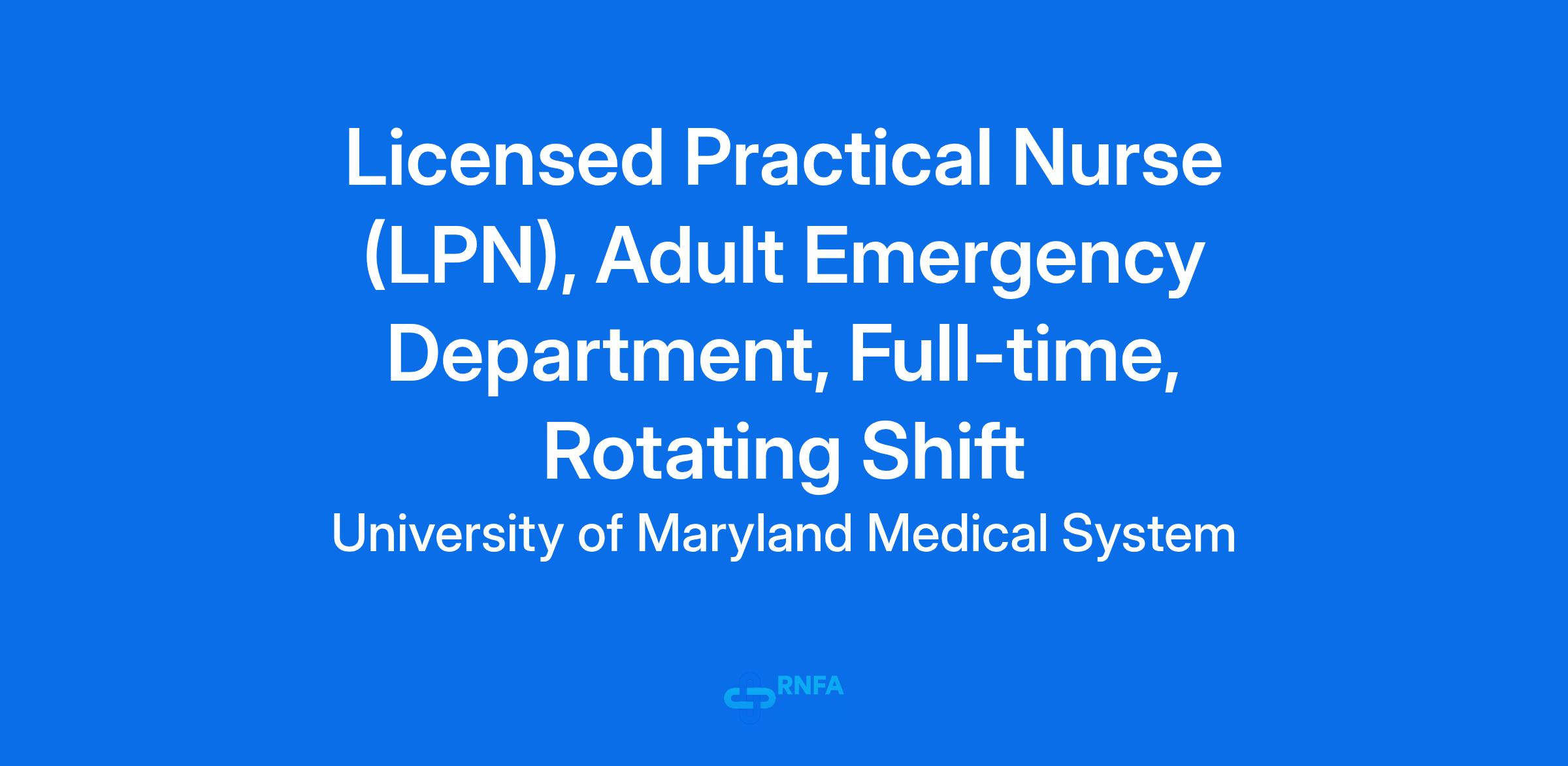 Current licensure as a Licensed Practical Nurse by the Maryland State Board of Examiners of Nurses is required.