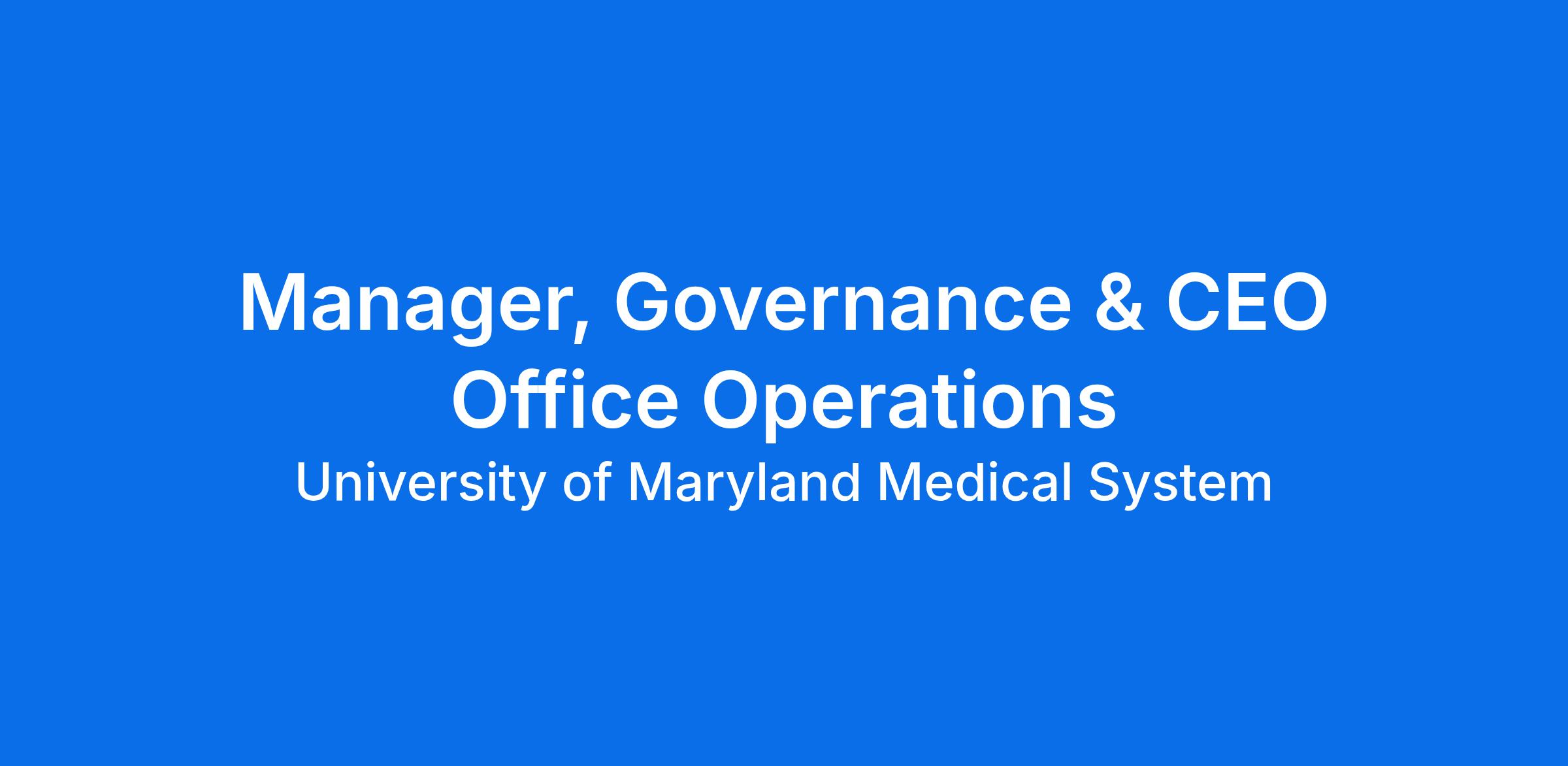 Responsible to support the Chief of Staff in strategic outreach and counsel to the Board of Directors for the University of Maryland Medical Center (UMMC). Will also oversee office operations for the CEO. Drafts communications, oversees the planning and execution of events, and provides strategic, operational, and administrative support for the CEO office, the Board, its leadership and Committees.