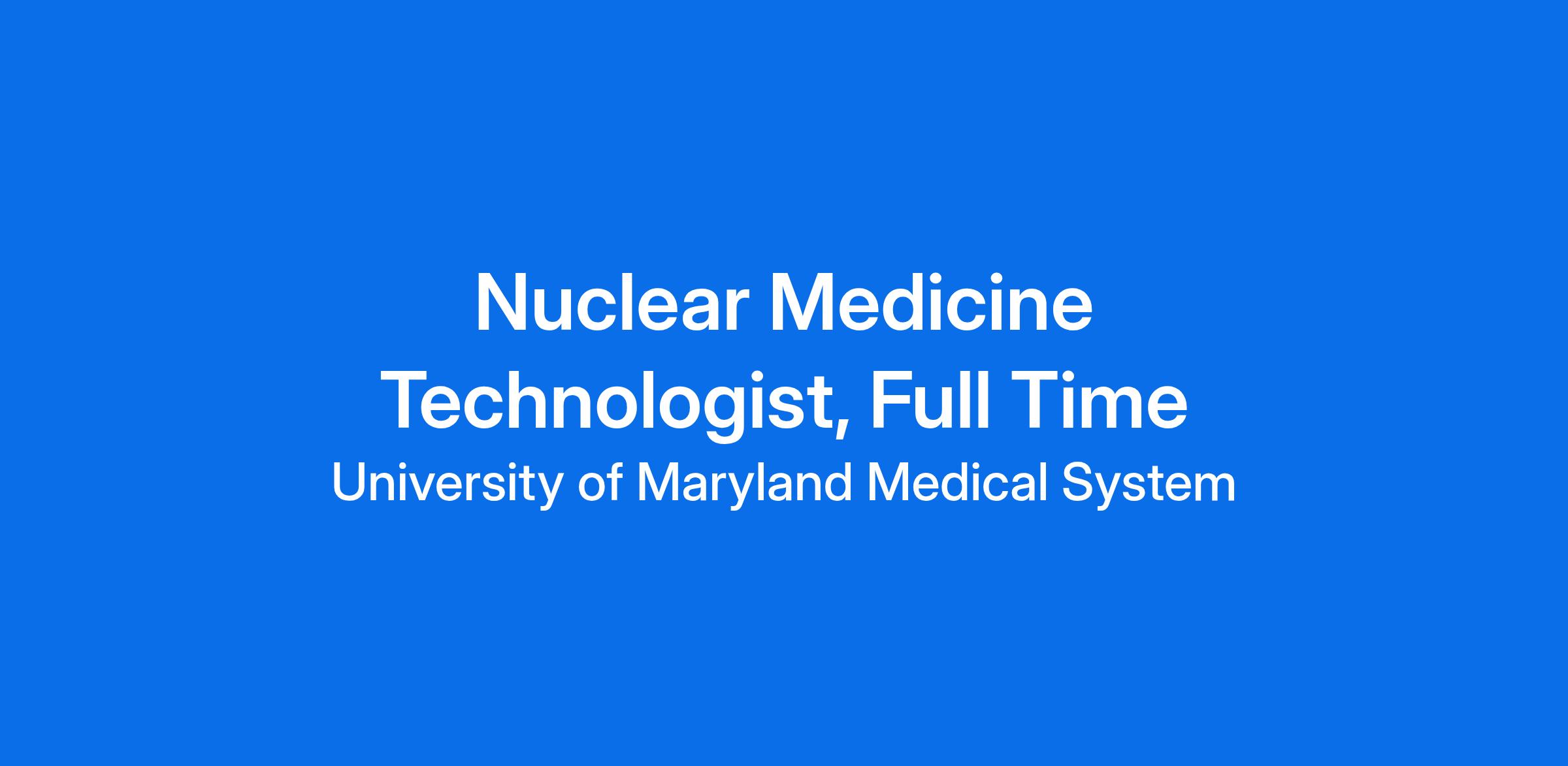 Licensed Nuclear Medicine Technologist - State of MD