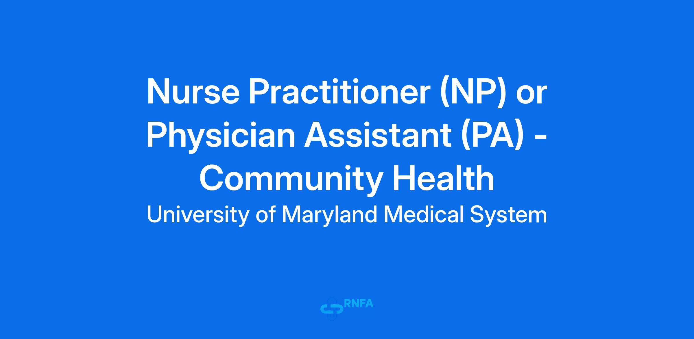 Current Maryland Nurse Practitioner license as an adult, geriatric, or family nurse practitioner or current Maryland Physician Assistant licensure.