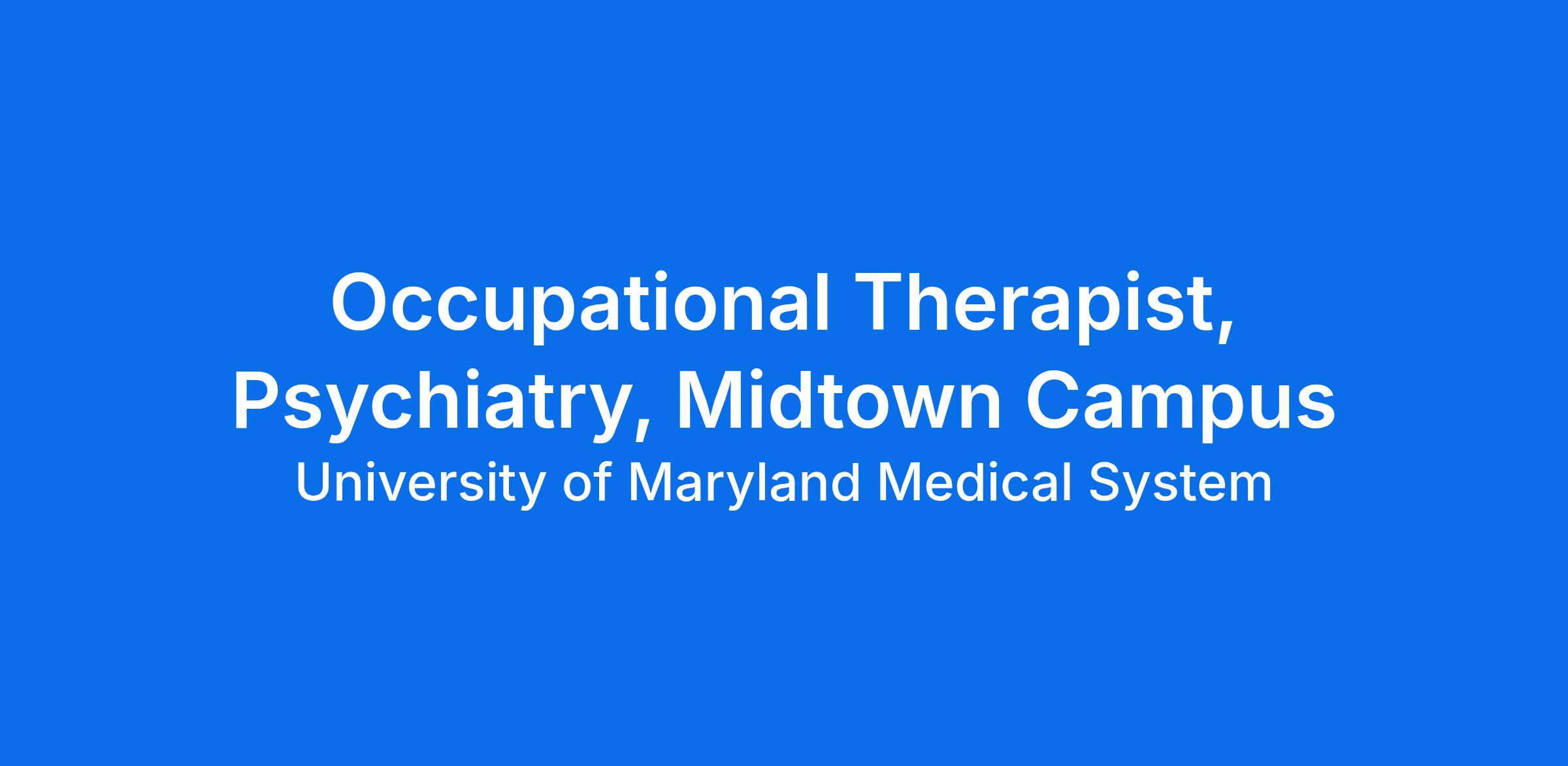 Current licensed Occupational Therapist in the state of Maryland is Required.