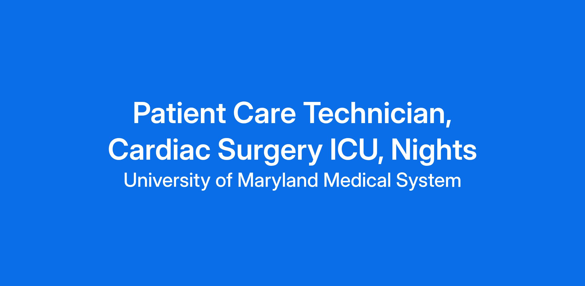 Patient Care Technician, Cardiac Surgery ICU, Nights