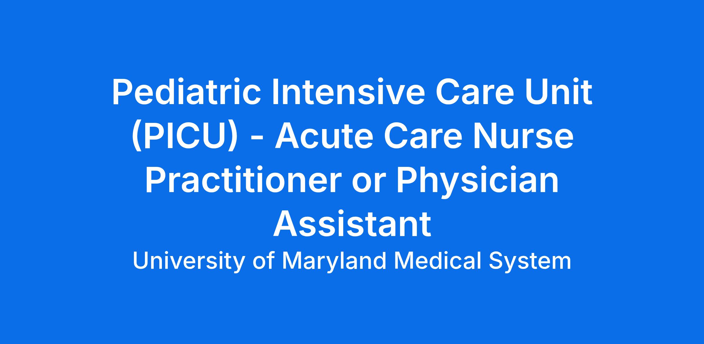 Position: Nurse Practitioner (NP) or Physician Assistant (PA) - Pediatric Intensive Care Unit Shift: Full-time/Rotating