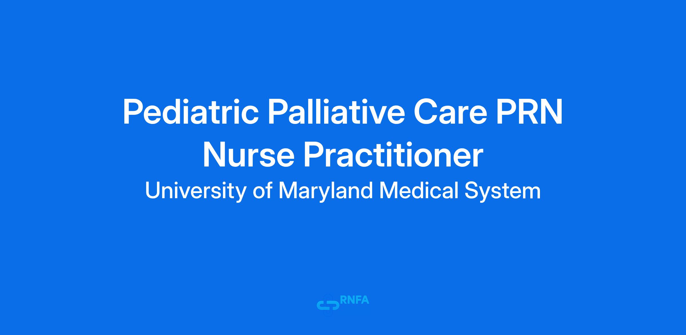The University of Maryland Medical System is looking for a PRN Pediatric Palliative Care Nurse Practitioner to join our team. This position will work at the flagship University of Maryland Medical Center as well as at our Midtown location which are in close proximity to each other.