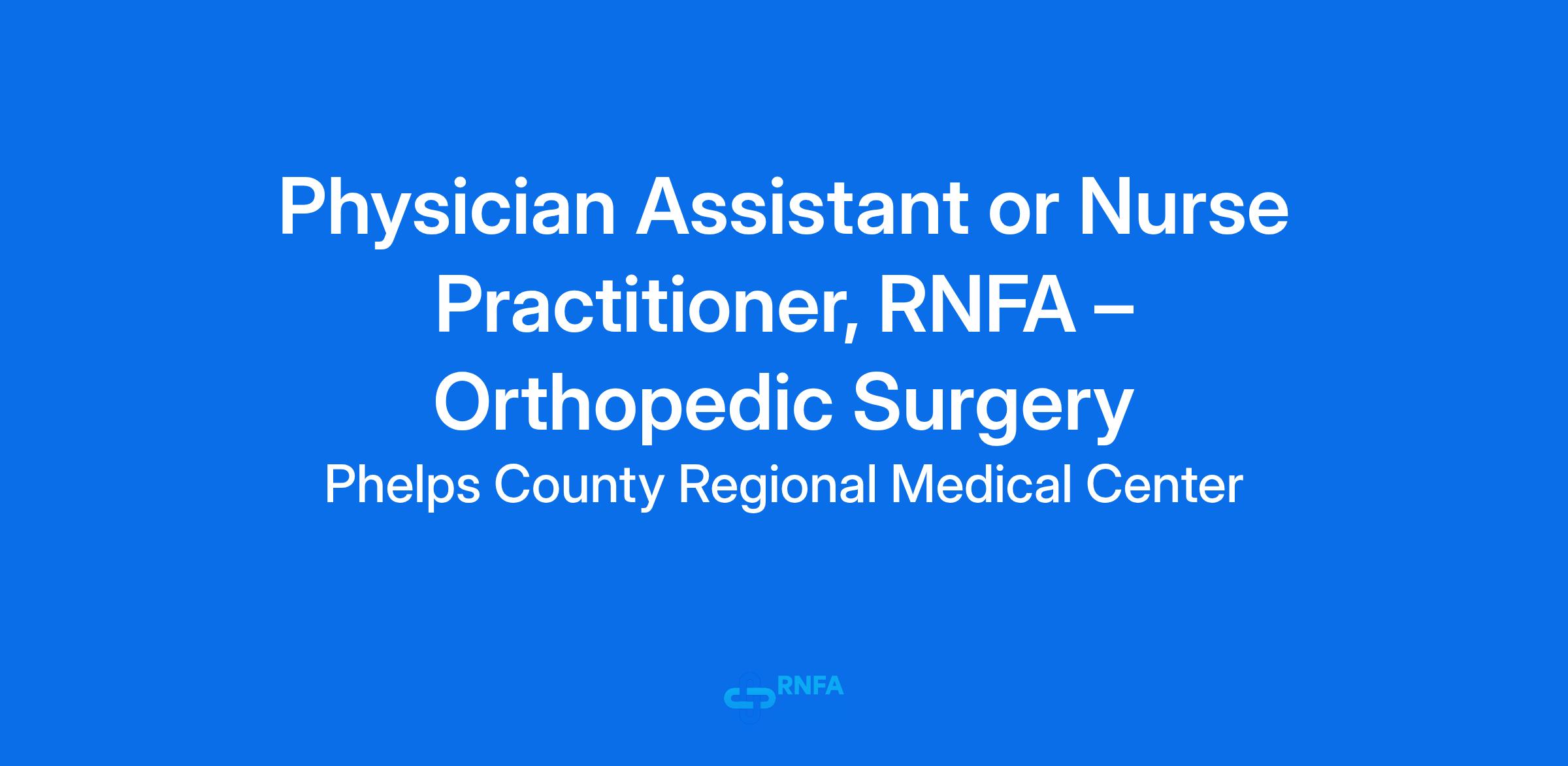 Join our orthopedic surgery team as a Physician Assistant or Nurse Practitioner, RNFA, where you'll work alongside experienced surgeons while building expertise in a dynamic, hands-on role.