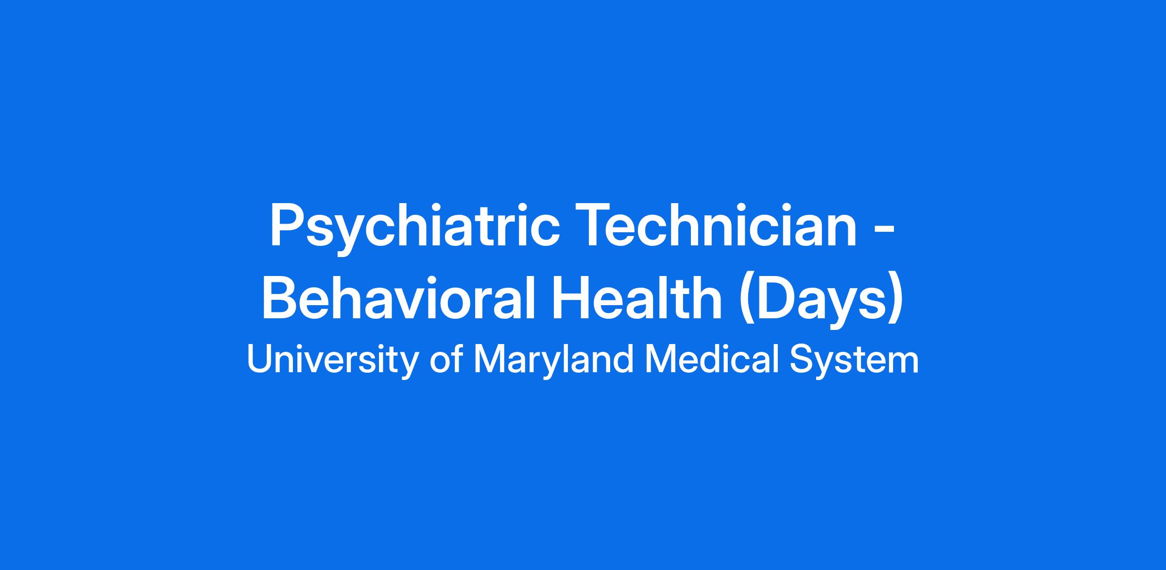 This is an incredible opportunity to join an innovative, trauma-informed team of behavioral health professionals where you can offer recovery, resilience, and hope so individuals in our community live their best lives. Full-time patient care technician positions are available at the Upper Chesapeake Health Inpatient Behavioral Health Pavilion in Aberdeen, Maryland.