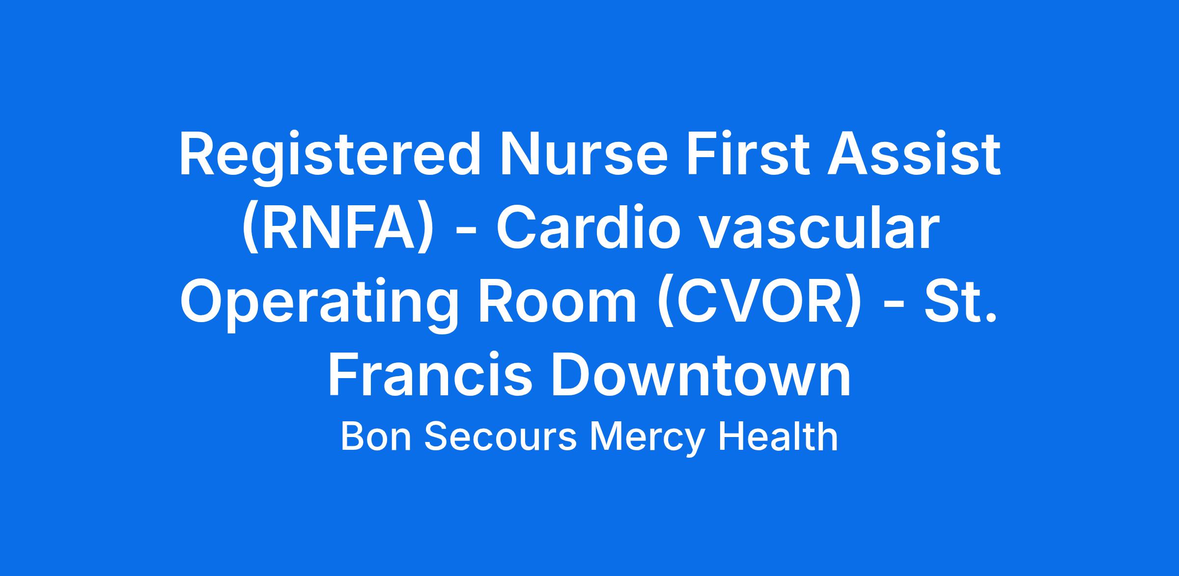 Registered Nurse (RN) First Assist (RNFA) - CVOR/Surgical Services - St. Francis Downtown