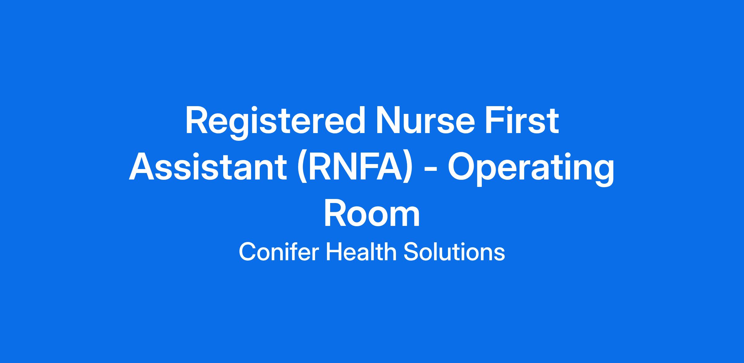 The Registered Nurse First Assistant (RNFA) is a perioperative nurse who may function as an assistant to the surgeon in the operating room during surgical procedures. The RNFA performs first assistant behaviors according to hospital policy. In addition to first assisting, responsibilities may include circulating, scrubbing and other duties as assigned. Access to all Patient Health Information for treatment purposes only.
