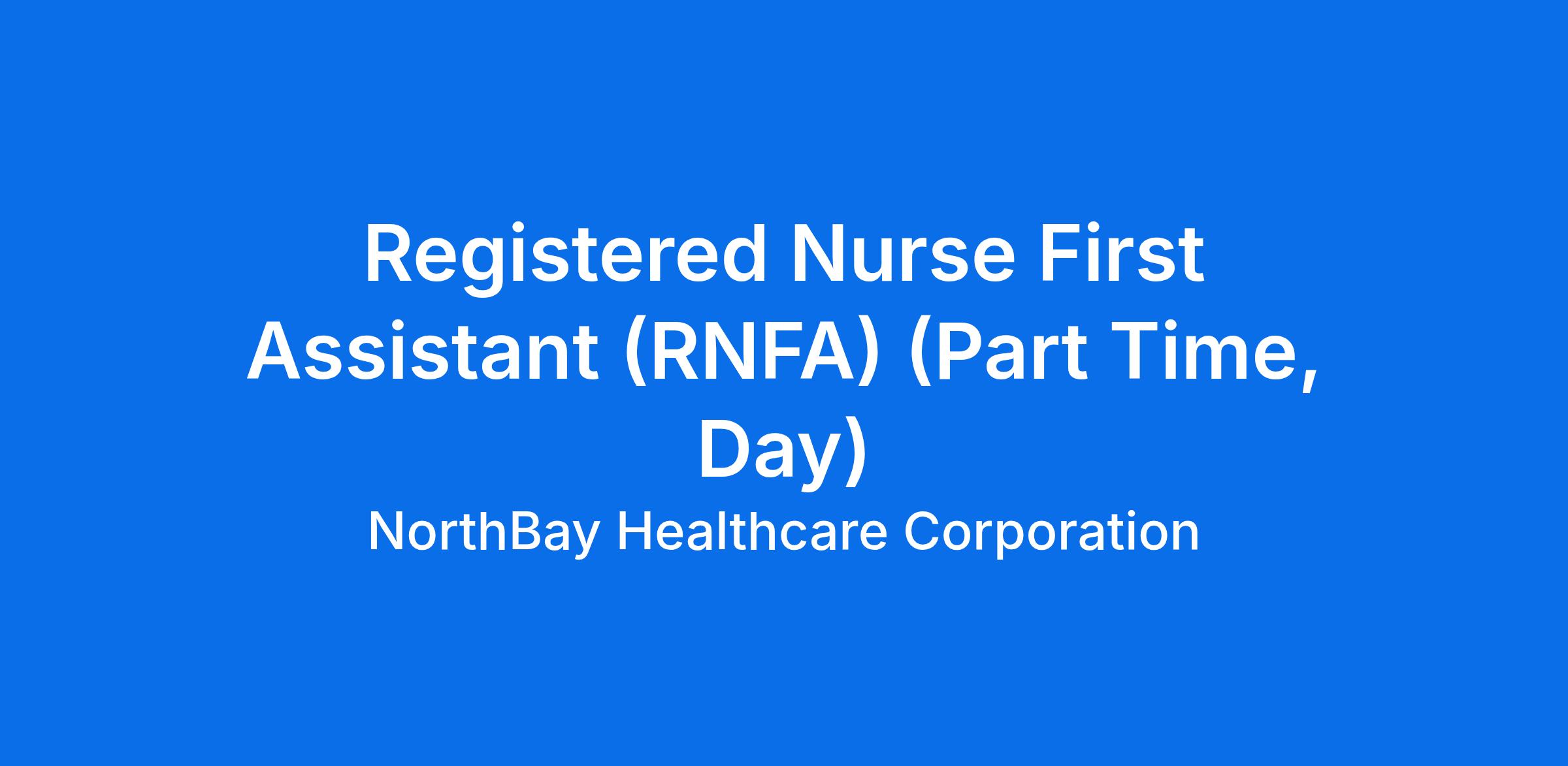 At NorthBay Health the Registered Nurse First Assistant (RNFA) has the responsibility, accountability, and the authority to deliver safe, effective, quality, excellent nursing care according to the philosophy and goals/objectives of the Department of Nursing. The RNFA, utilizing the Jean Watson’s Theory of Caring, Relationship Based Care, and NorthBay’s professional nursing practice model to assess, plans, implements, and evaluate care for all patients assigned to his/her care. The RNFA makes determinations regarding the progress of the patient toward goals and utilizes a therapeutic professional relationship with the patient/ family and interdisciplinary team to facilitate the promotion, maintenance, and restoration of health. The RNFA functions as a first assistant during surgical incision, excision, and repair of pathology throughout the perioperative period on procedures for which privileges have been granted. Care is provided according to specific physiologic, developmental and psychosocial needs of the patient. RNFA supports the mission, vision, values and expectations of excellence of the organization.