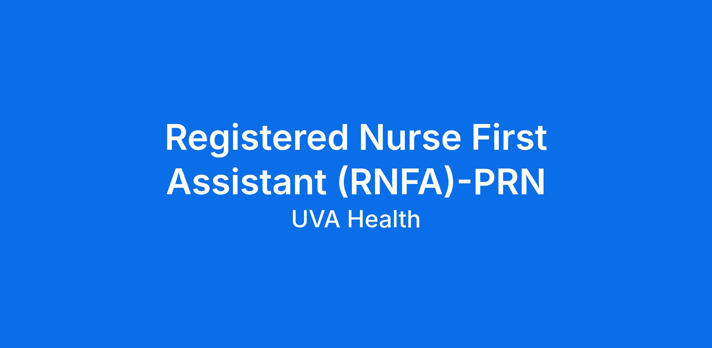 The Registered Nurse First Assistant (RNFA) is a perioperative registered nurse who functions in an expanded role to work collaboratively with the surgeon and the surgical team. The RNFA provides first-assist services during surgical procedures, performs perioperative nursing responsibilities, and ensures high-quality patient care throughout the surgical experience.