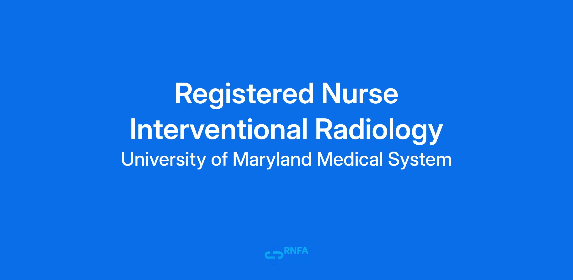 We are seeking an Interventional Radiology (IR) Registered Nurse (RN) to join our nursing team at UMMC Midtown Campus.