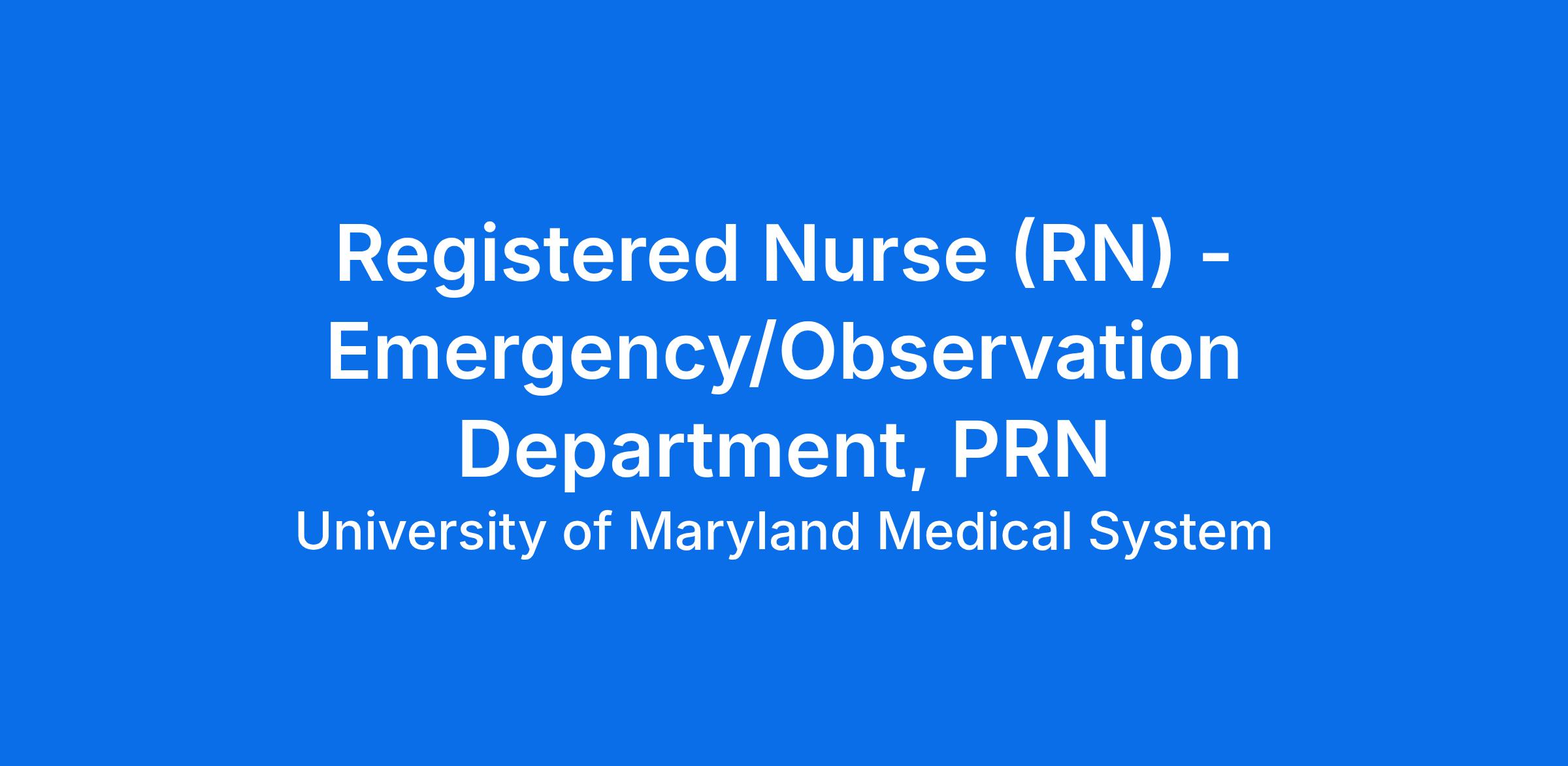 Registered Nurse (RN) - Emergency/Observation Department - PRN