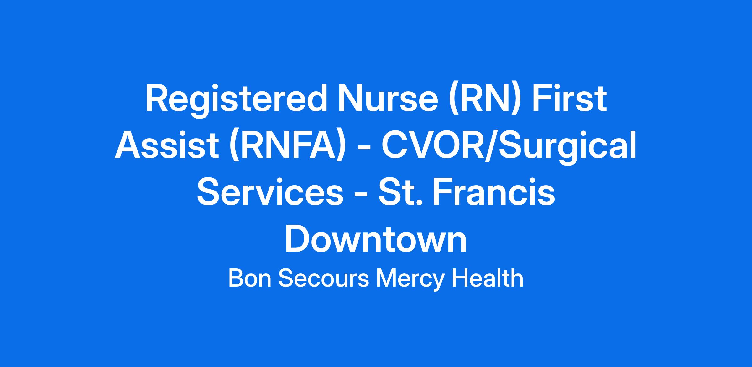 Registered Nurse (RN) First Assist (RNFA) - CVOR/Surgical Services - St. Francis Downtown