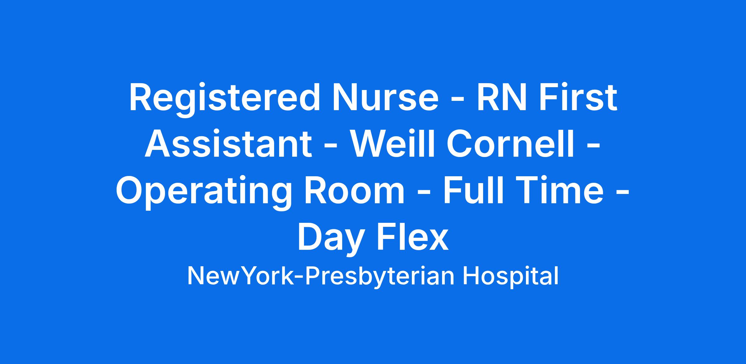 Registered Nurse - RN First Assistant - Weill Cornell - Operating Room - Full Time - Day Flex