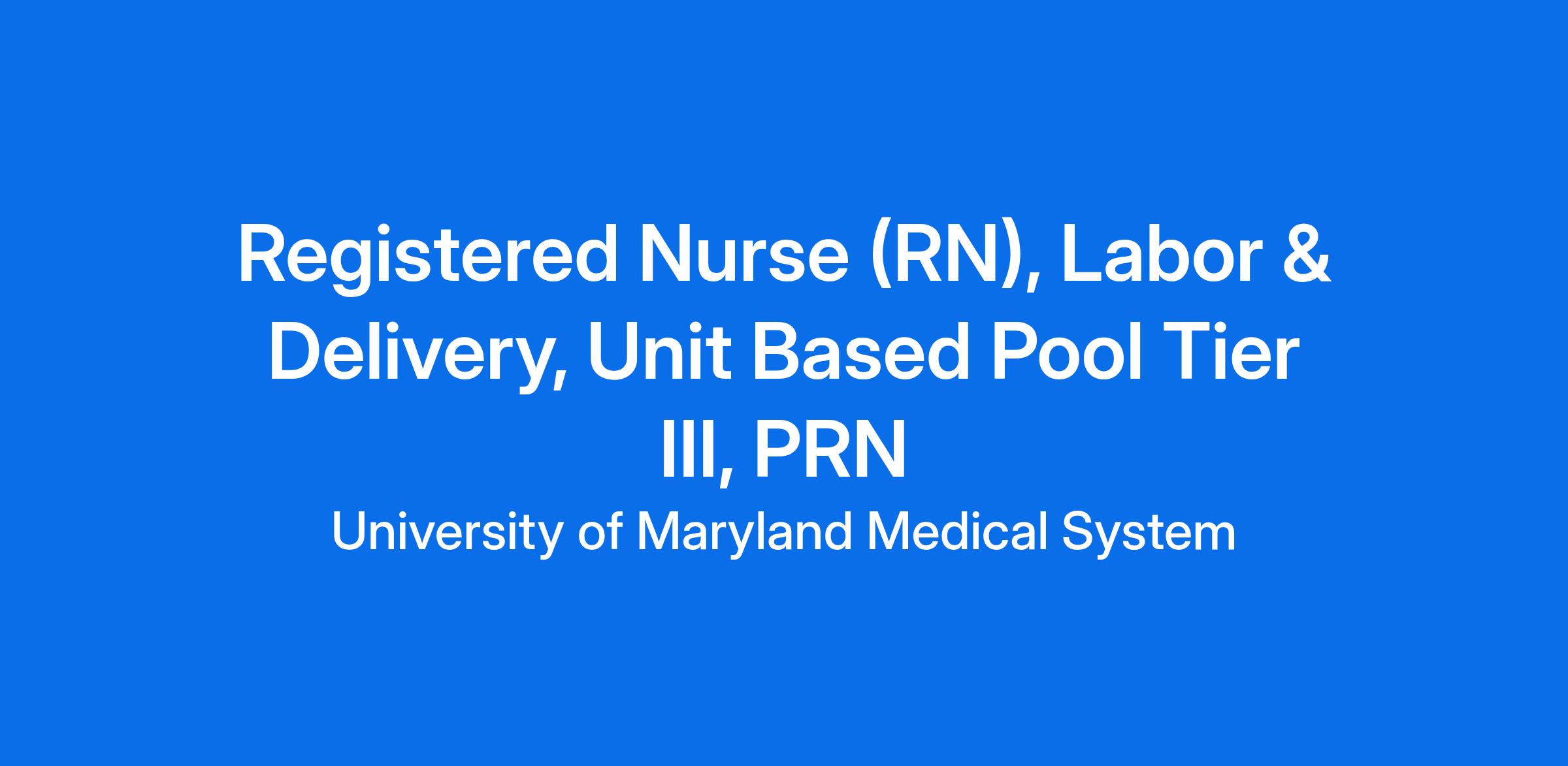 Registered Nurse (RN), Labor & Delivery, Unit Based Pool Tier III, PRN