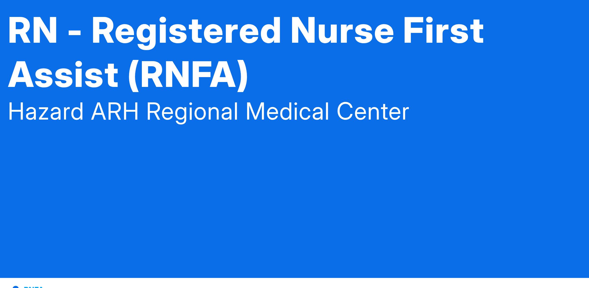 Genie Healthcare is looking for a RN to work in Registered Nurse First Assist (RNFA) for a 12.86 weeks travel assignment located in Hazard, KY for the Shift (5x8 Days - Please verify shift details with recruiter, 07:00:00-15:00:00, 8.00-5).