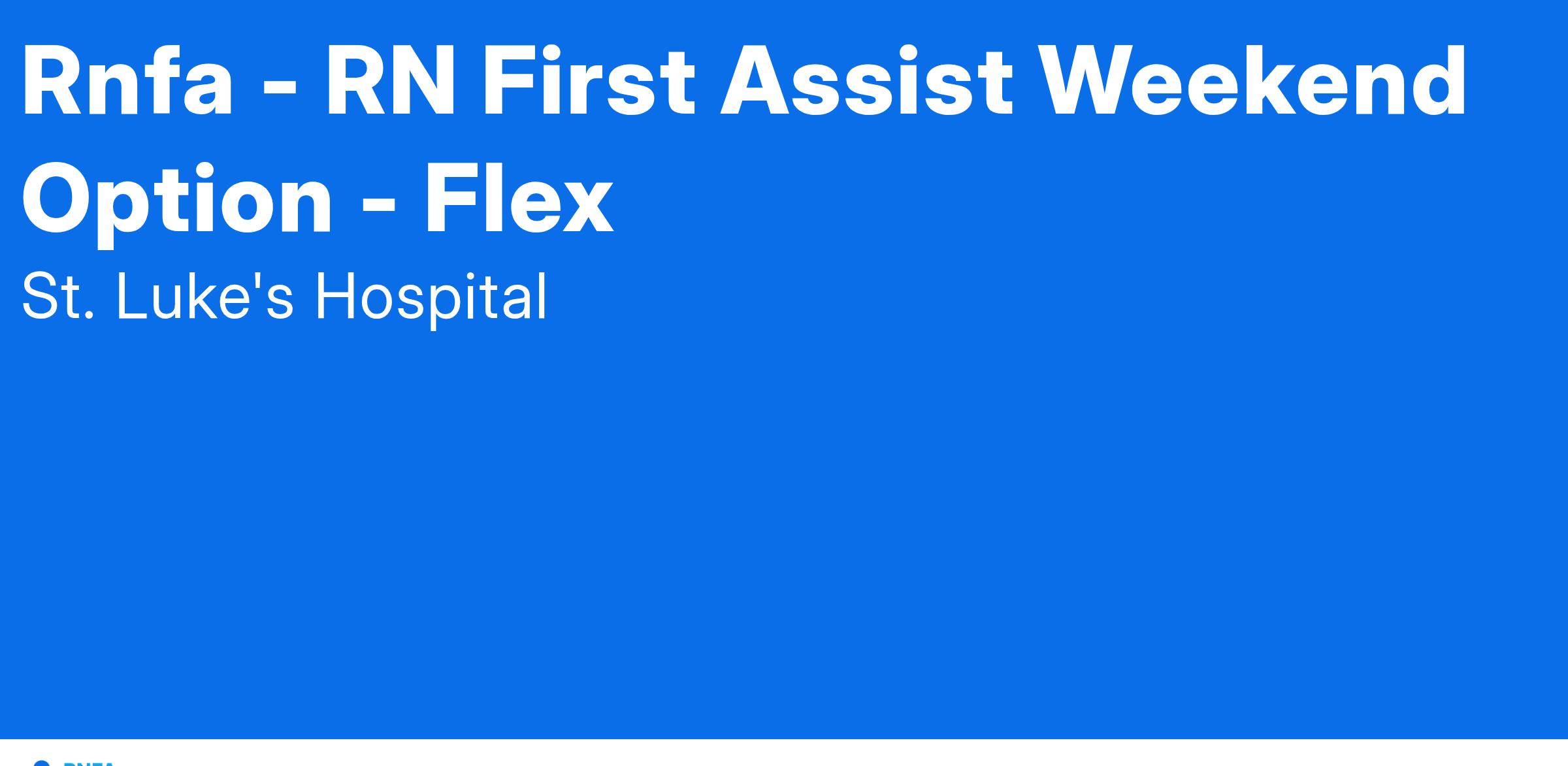 Performs the primary functions of a Registered Nurse in assessing, planning, implementing and evaluating the care of patients during the perioperative period in accordance with all established Nursing Standards and Hospital Policies. Functions in the first or second assistant role under the direction of the Surgeon. Is responsible for managing all assigned personal supplies and equipment in the operating room. Responsible for promoting teamwork with all members of the healthcare team. Performs duties in a manner consistent with St. Luke’s mission and values.