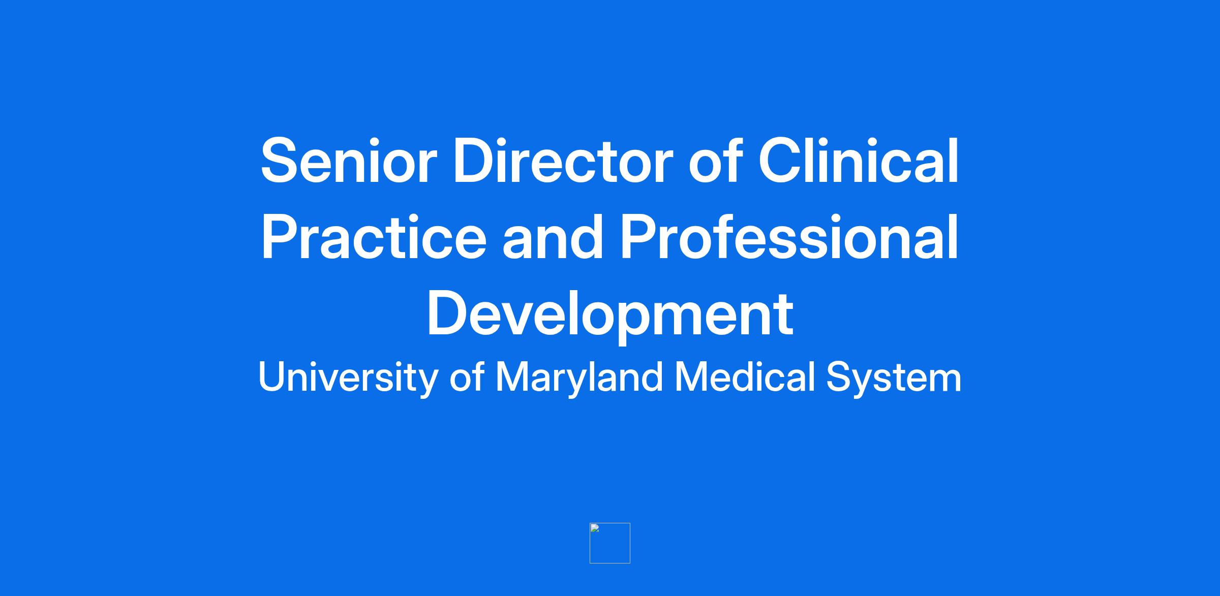 Under supervision of the Senior Vice President of Patient Care Services and Chief Nursing Officer, provides leadership in the assessment, development, implementation and evaluation of professional development programs for nursing and patient care services at the University of Maryland Medical Center (Downtown and Midtown Campuses) with focus on clinical excellence, quality, professional advancement, practice, education and inquiry.