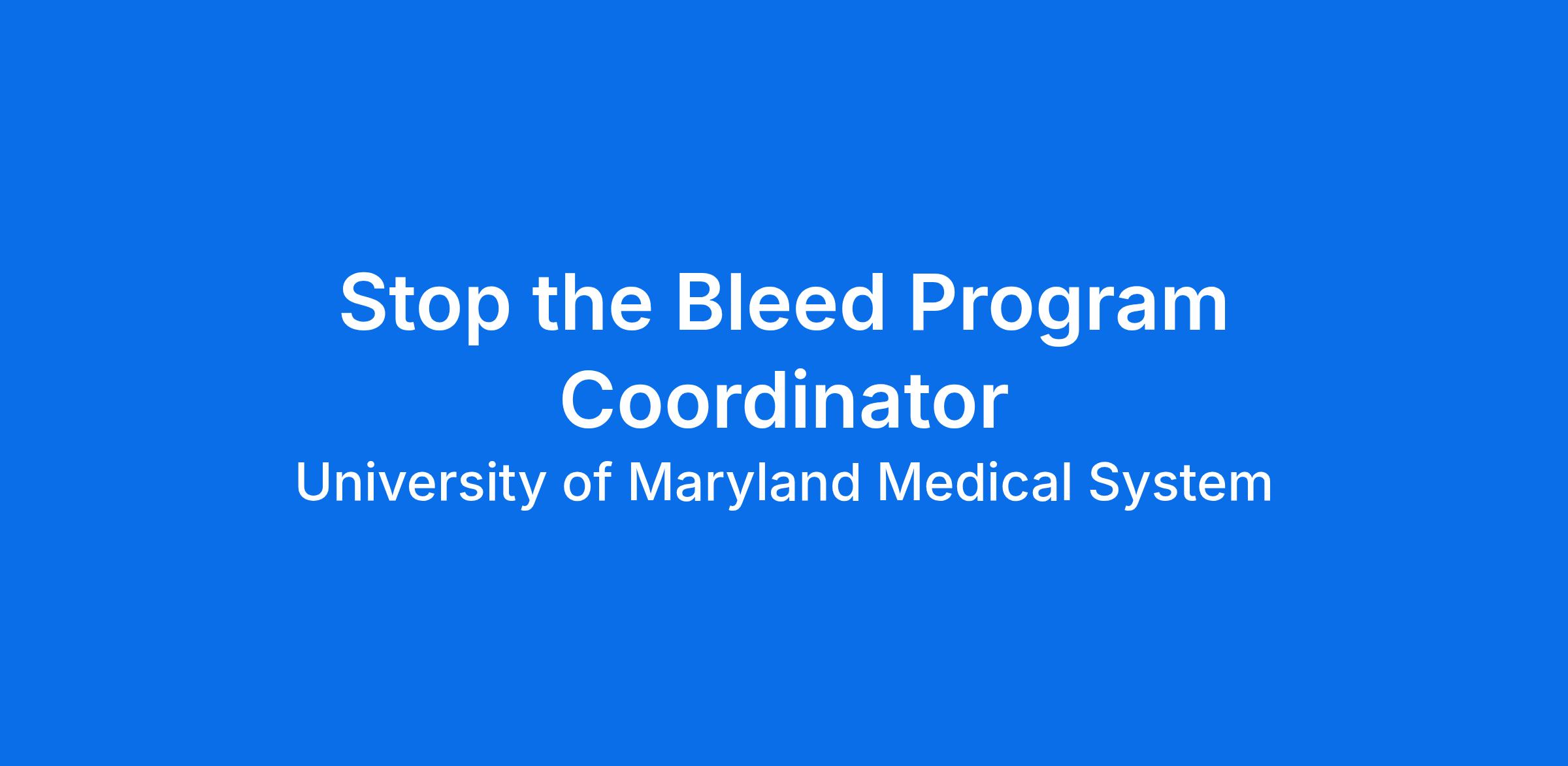A Stop the Bleed (STB) Coordinator assists with implementation and execution of the Stop the Bleed Program Statewide strategic goals for R Adams Cowley Shock Trauma Center within the Center for Injury Prevention and Policy (CIPP). This includes program coordination, teaching, and partnership development across the state. The STB Coordinator will work with the Stop the Bleed Program Supervisor to assist in special projects, events, and other related activities.