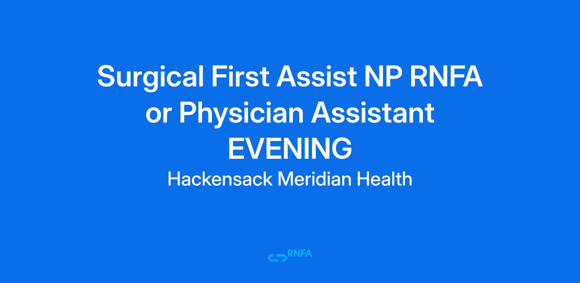 Evening surgical first assistant PA or NP with RNFA needed for a 3pm-11pm shift. Some flexibility on hours, looking for evening coverage.
