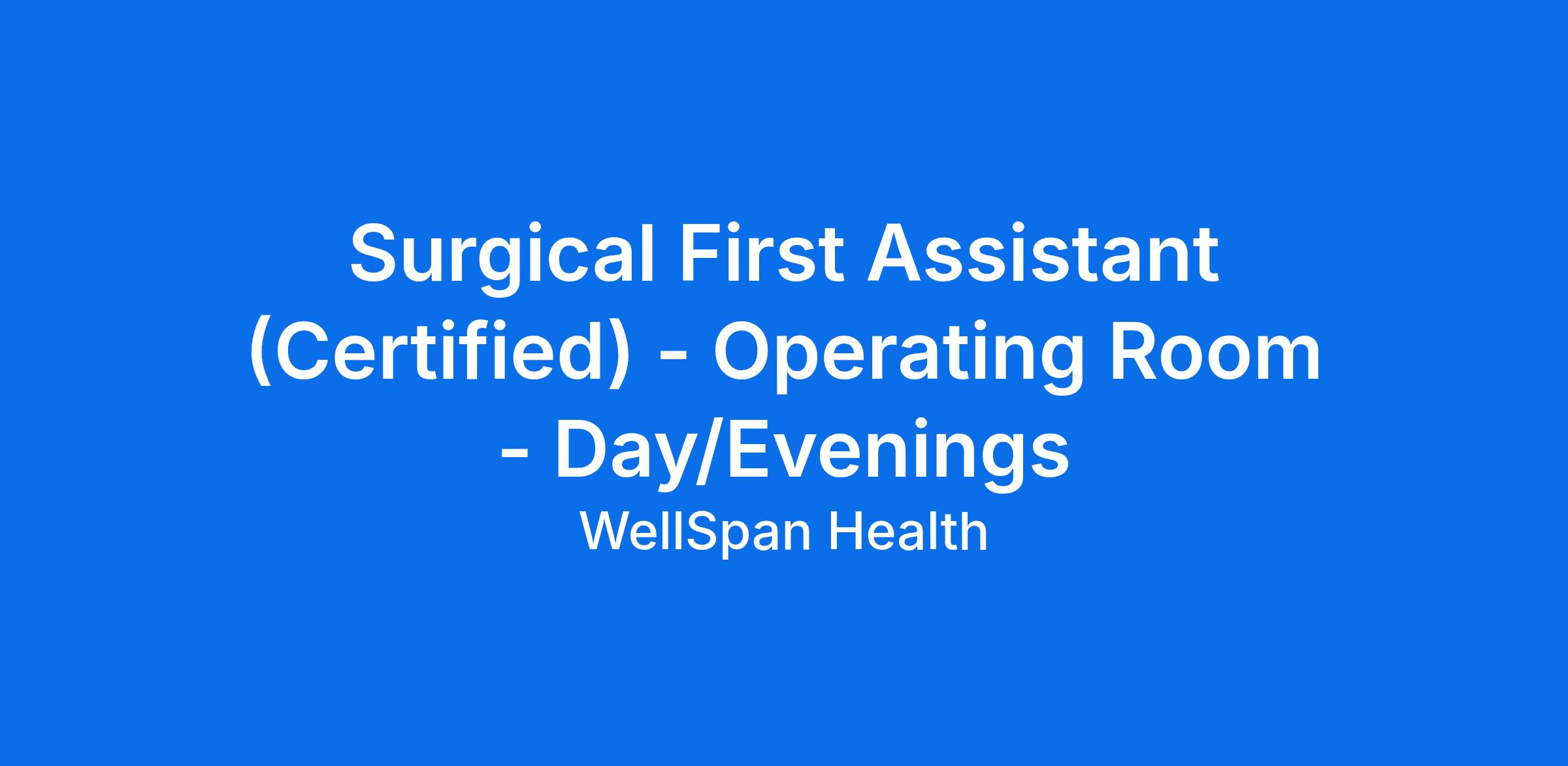 Certifications/Licensure: Certified Surgical First Assistant (CSFA) by the National Board of Surgical Technology and Surgical Assisting (NBSTSA) or Surgical Assistant - Certified (SA-C) by the American Board of Surgical Assistants (ABSA) required.