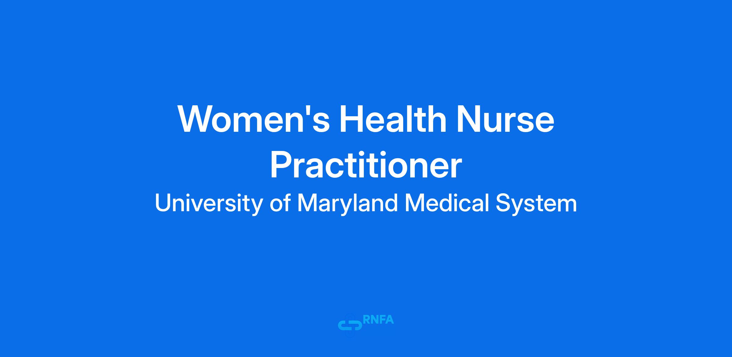 UM Upper Chesapeake Health (UM UCH), a member of the University of Maryland Medical System (UMMS), has a full-time employed position available for a Women's Health Nurse Practitioner to join their practice at UM Upper Chesapeake Medical Center in Bel Air, MD.